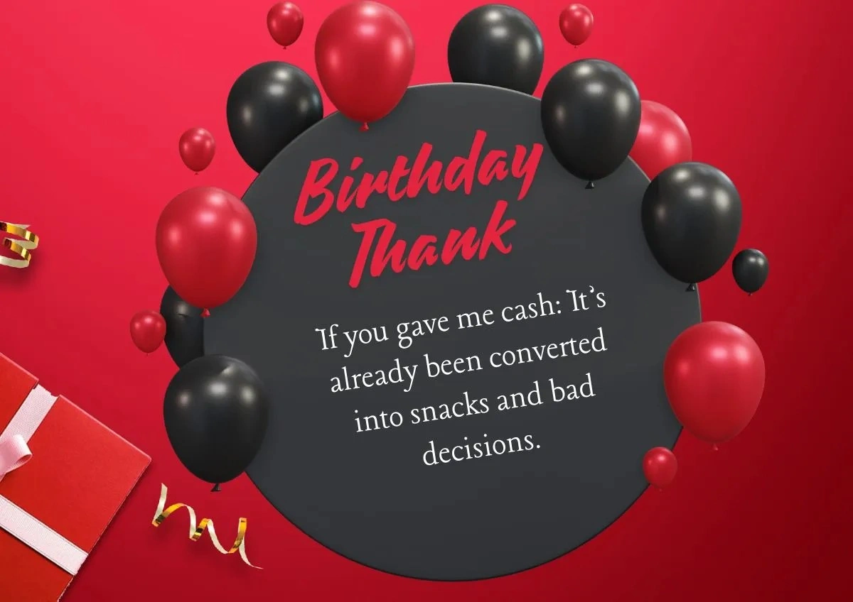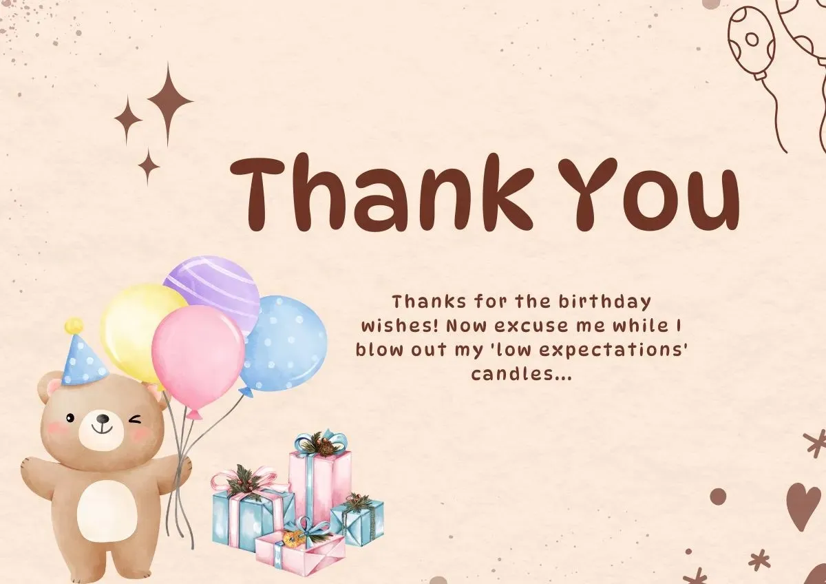 What are you waiting for? Let’s dive into the ocean of funny birthday thankyou responses this guide has composed. You can inspire others to do the same instead of sticking to conventional ways. Also, you must note down what you like and use them for your birthday.