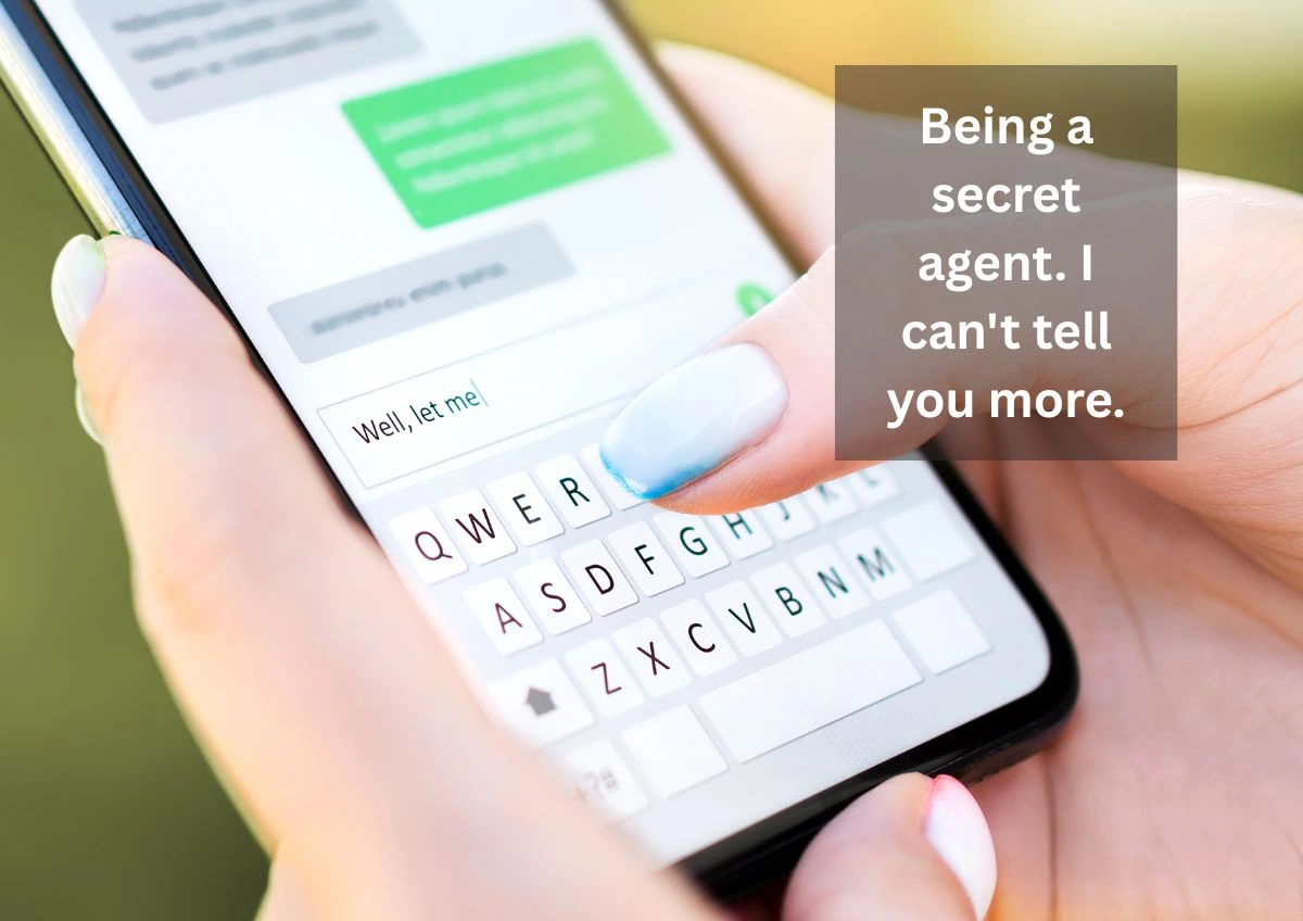 - "Being a secret agent. I can't tell you more."