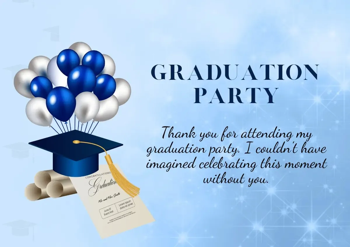A graduation party is a wholesome moment of celebration. Being surrounded by your near and dear ones at your graduation party swells your heart with gratefulness and joy wrapped in happiness. When the guests are all gone, saying thank you to them is meaningful.